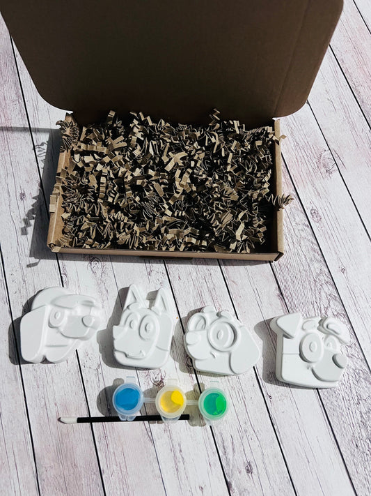 Blue dog and friends inspired plaster of paris craft box - Activity set - Room decoration - Childrens Gifts - Gifts - Paintable - Painting