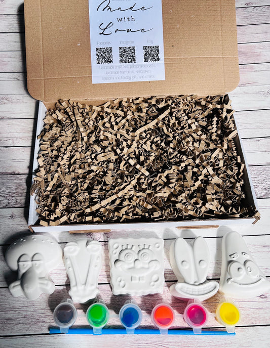 Sponge boy and friends inspired plaster of paris craft box - Activity set - Room decoration - Childrens Gifts - Gifts - Paintable - Painting-