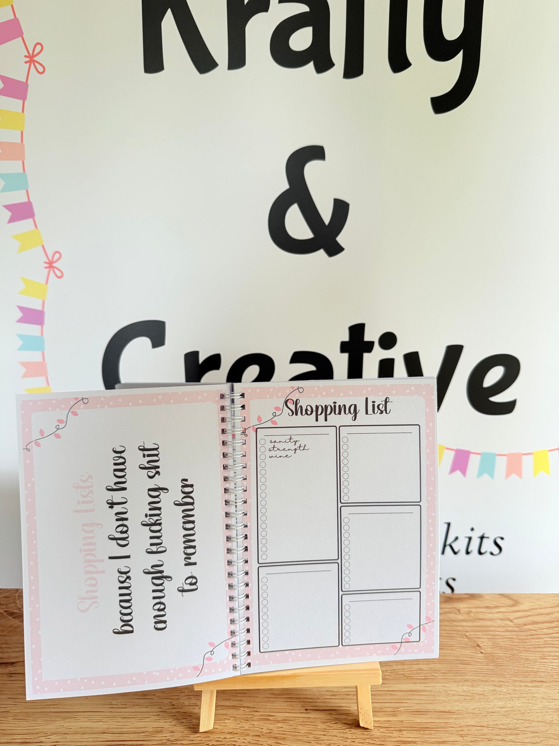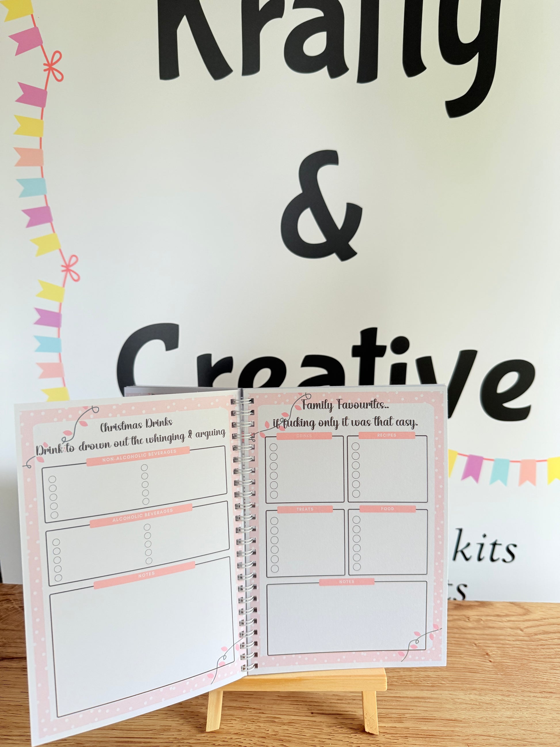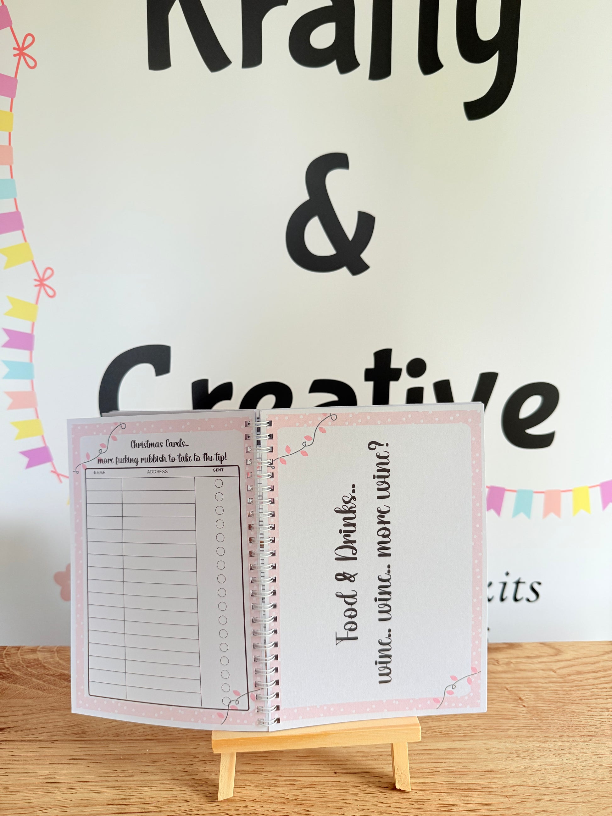This isn’t your average “polite” planner. Nope. This beauty is bursting with all the lists you could possibly need – from meal planning and gift tracking to card sending, budget wrangling, and even keeping tabs on who’s bringing the mulled wine. It’s basically your December survival kit… with a side of sass.