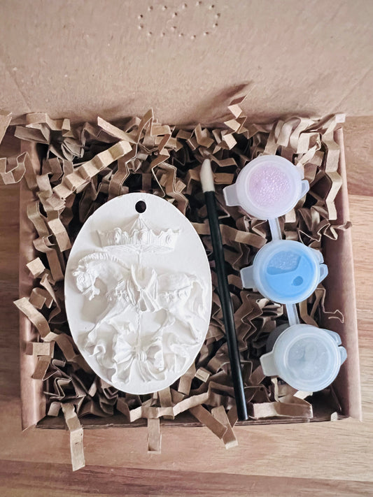 Horse carousel hanging decoration paint your own plaster of paris craft box - Activity set - Room decoration - Childrens Gifts - Gifts - Paintable - Painting - art