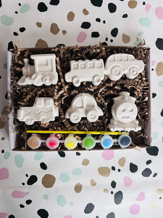 Vehicle inspired plaster of paris craft box - Activity set - Room decoration - Childrens Gifts - Gifts - Paintable - Painting - Mario