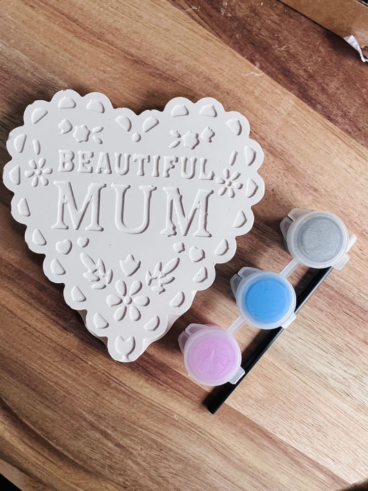 Beautiful mum heart decoration - paint your own plaster of paris craft box - Activity set - Room decoration - Childrens Gifts - Gifts - Paintable - Painting - art